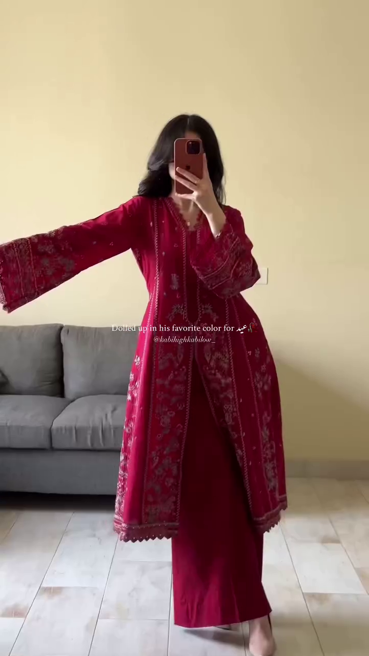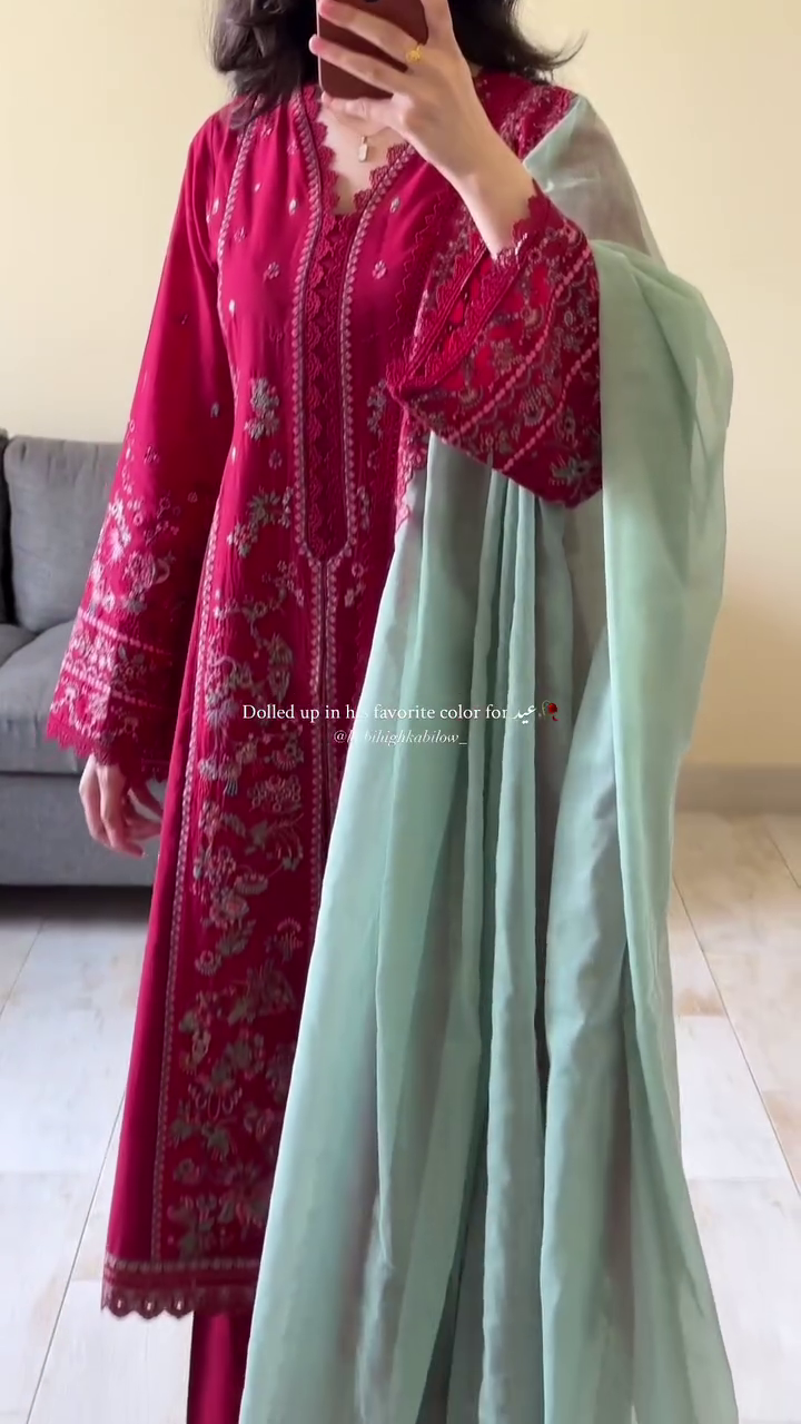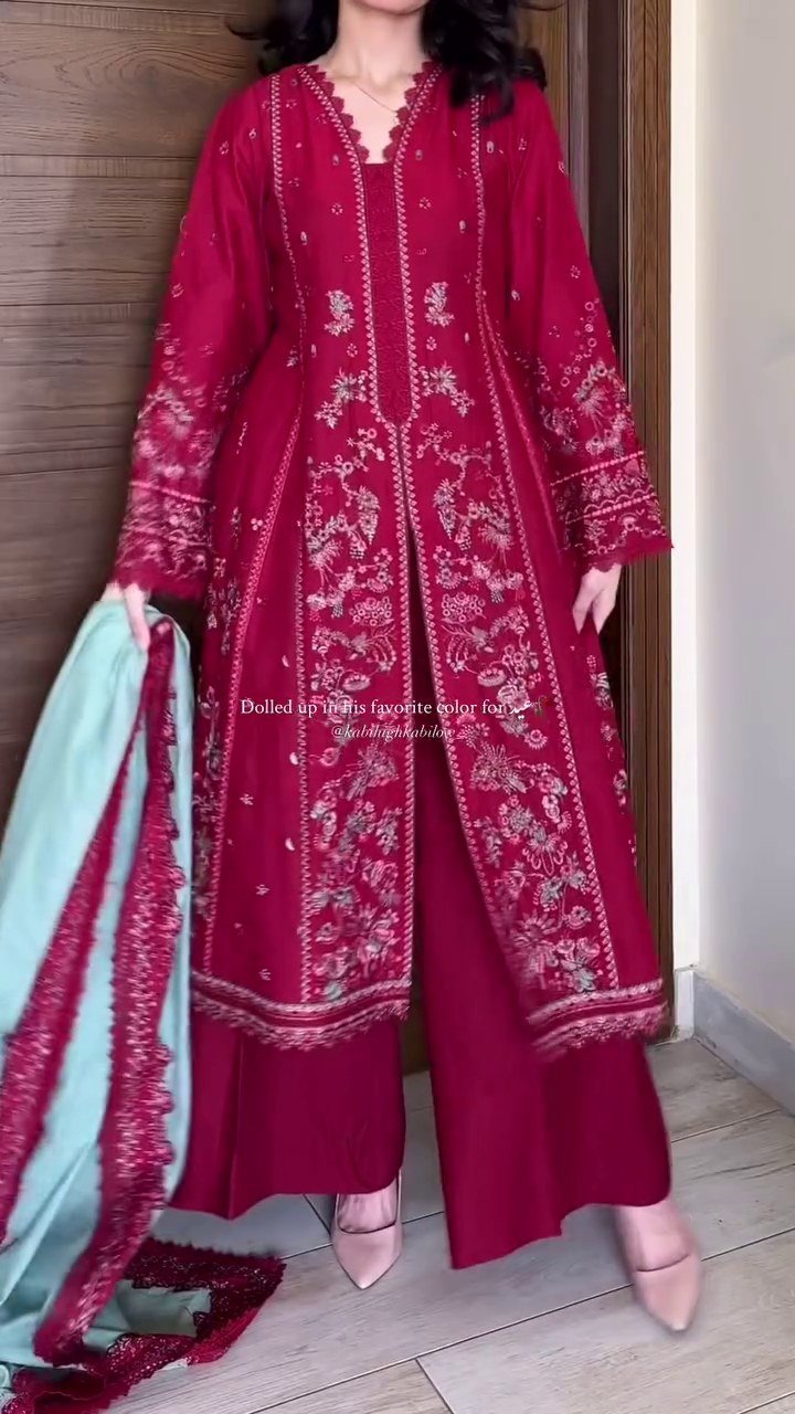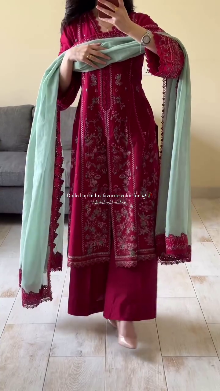 ✨ Elegant Maroon Embroidered Suit with Pastel Dupatta ✨