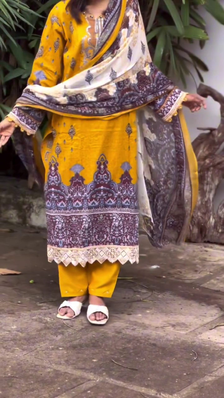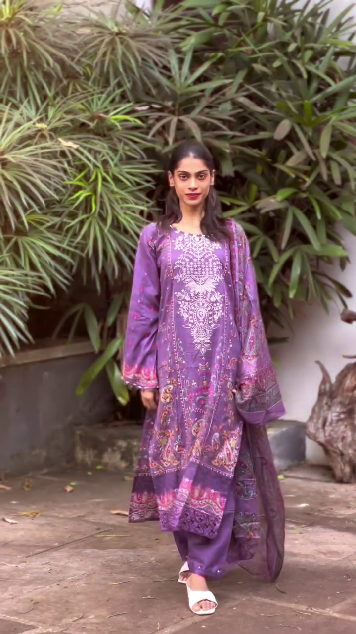 Styling is effortless. The ready-to-wear suit allows you to step out looking perfectly coordinated, while accessories such as statement earrings, bangles, or metallic heels can instantly elevate the outfit 👡💫. Minimal makeup and a sleek clutch complete the look for a modern, elegant finish.