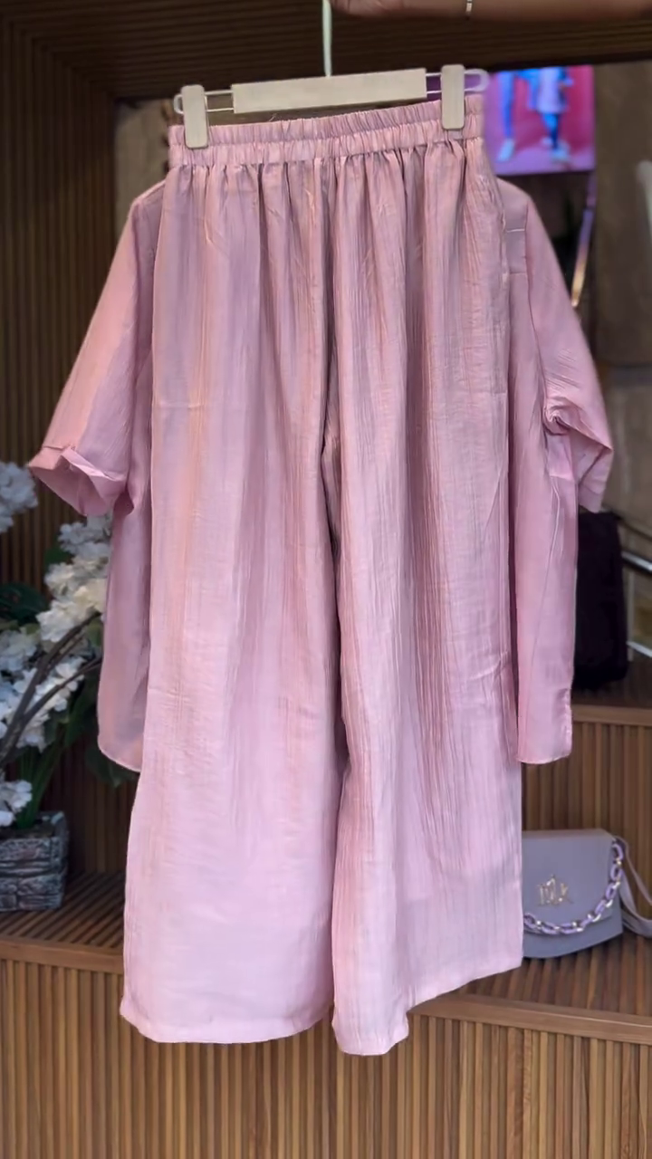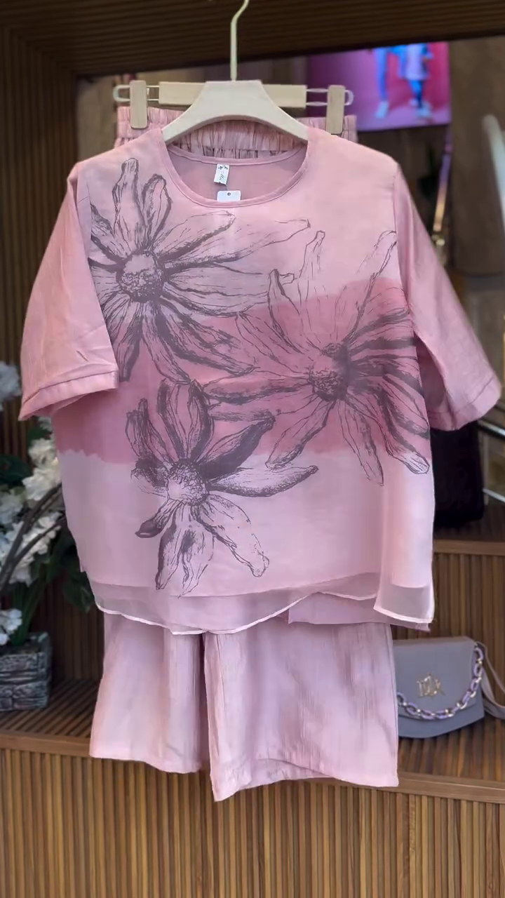 The set typically includes a matching top and bottom, designed in harmonious shades of pink with delicate floral patterns. The floral print adds a playful, romantic touch, while the coordinated pieces create a streamlined, put-together look. The top may feature relaxed or cropped silhouettes, button-down fronts, or subtle ruffle or sleeve detailing, while the bottoms can range from palazzos, skirts, shorts, or tapered pants for comfort and ease of movement. 🌸✨