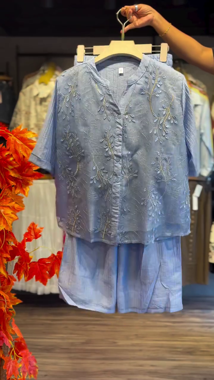 + Free Shipping💙 Effortless Elegance: Blue Embroidered Co-Ord Shirt Set for Chic Casual Style 💙