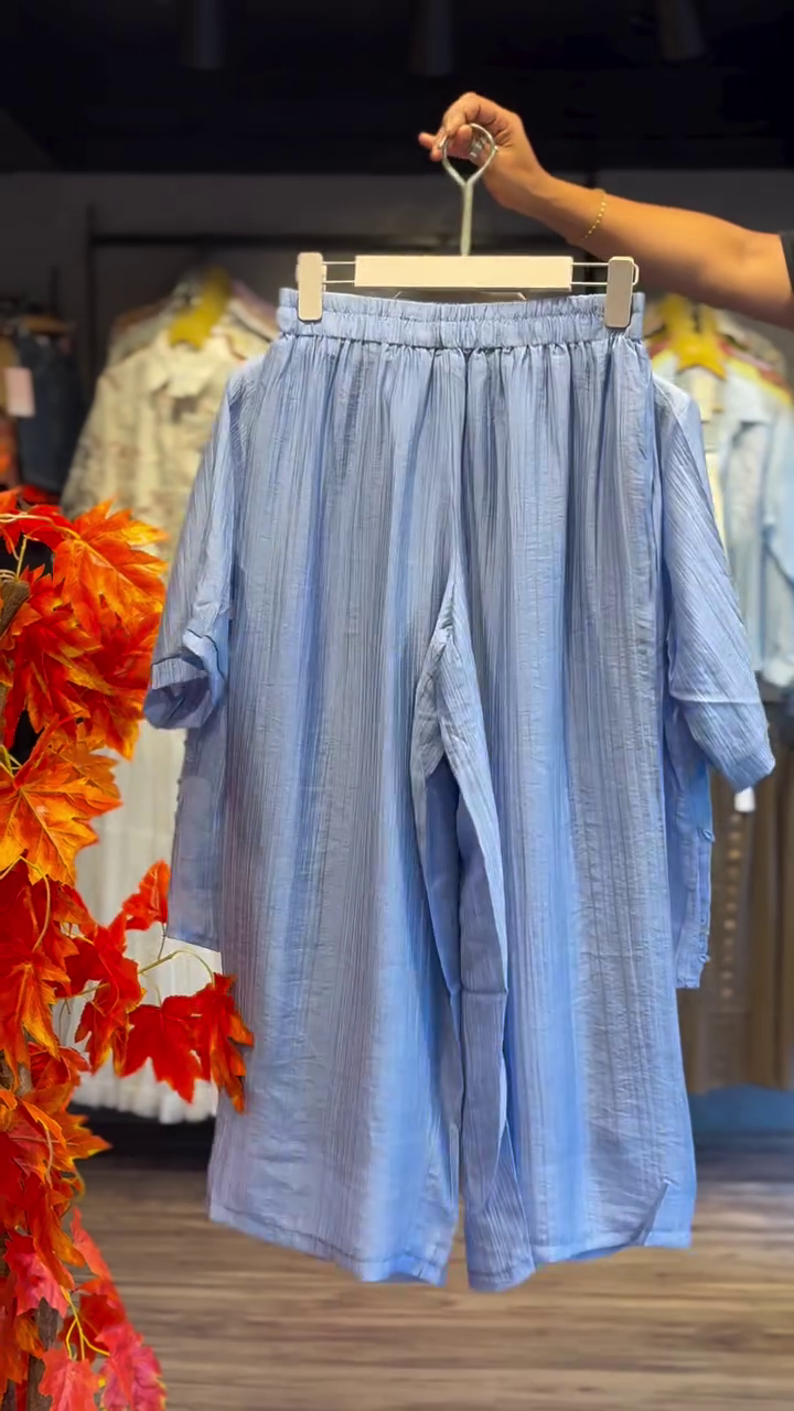 Paired with matching bottoms, the co-ord set offers a cohesive and effortlessly chic appearance. The bottoms feature a comfortable fit with a relaxed design, ensuring freedom of movement while maintaining style. The coordinated look eliminates guesswork in styling, making it easy to look put-together with minimal effort. Whether paired with flats for a casual vibe or heels for a polished finish, this set adapts seamlessly to your lifestyle. ✨