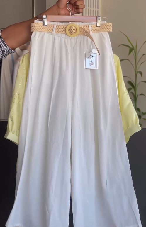 Paired with matching palazzo pants, this set ensures a relaxed yet chic look. The palazzo’s flowy design allows easy movement and adds sophistication to the ensemble, making it perfect for both casual and semi-formal occasions 👖✨. Together, the embroidered top and palazzo create a harmonious co-ord outfit that is versatile and stylish.