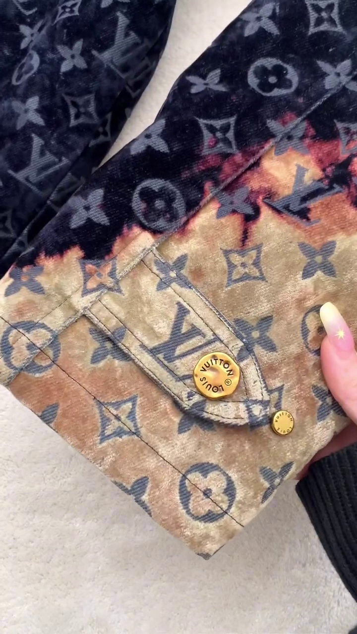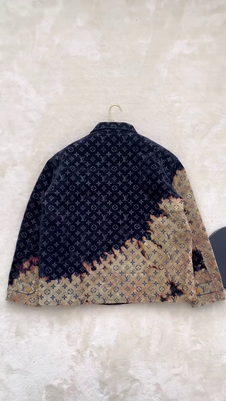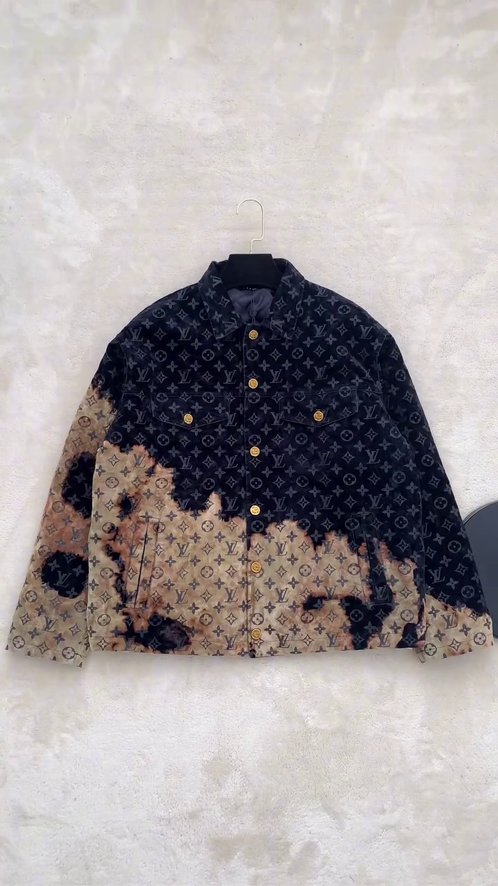 Crafted from high-quality denim fabric, this jacket features an eye-catching all-over monogram pattern combined with a unique vintage bleach-wash effect. The contrast of deep black tones with earthy brown fades gives it a rugged yet refined look, ensuring no two jackets look exactly the same. This makes every piece feel exclusive and statement-worthy 🔥.