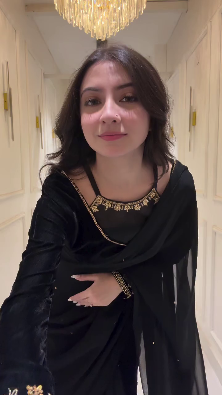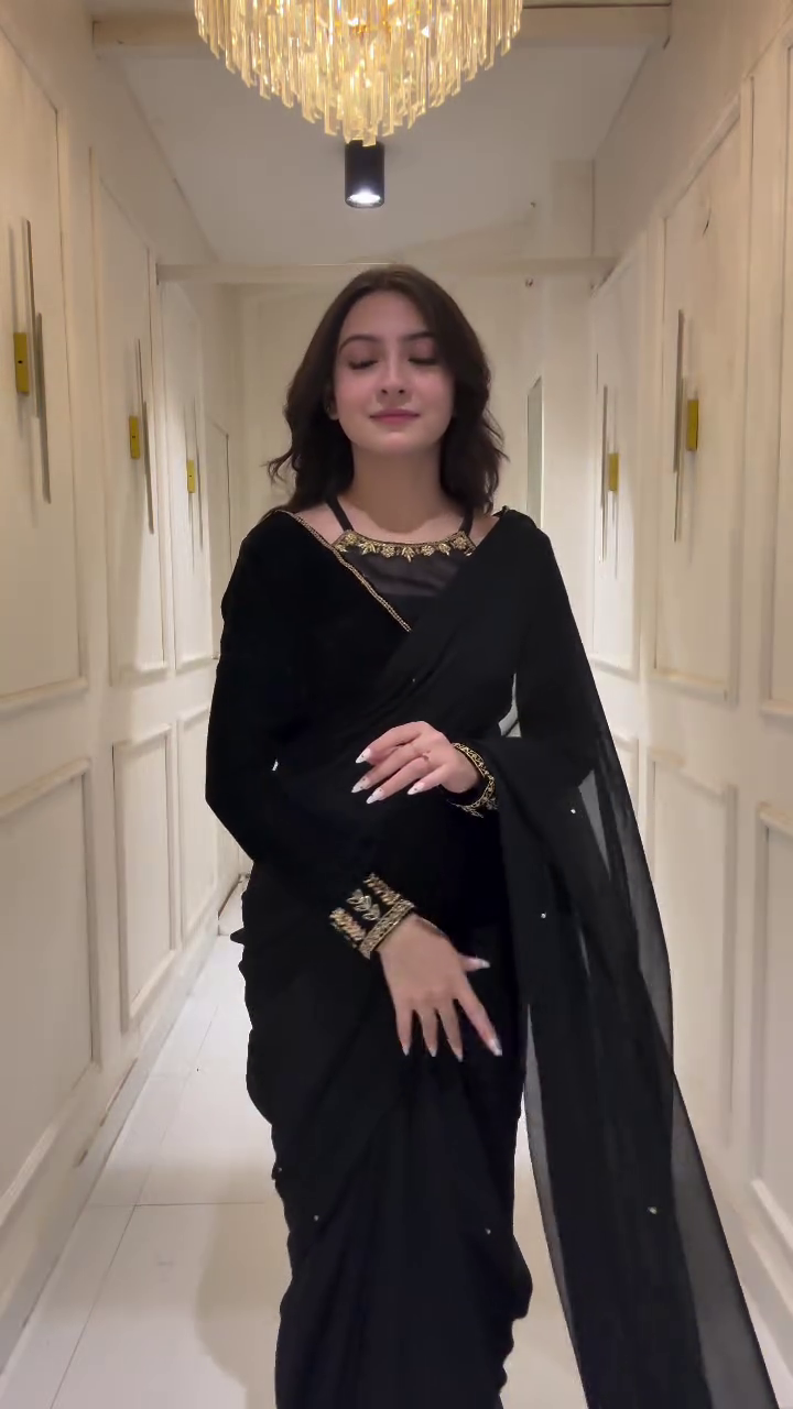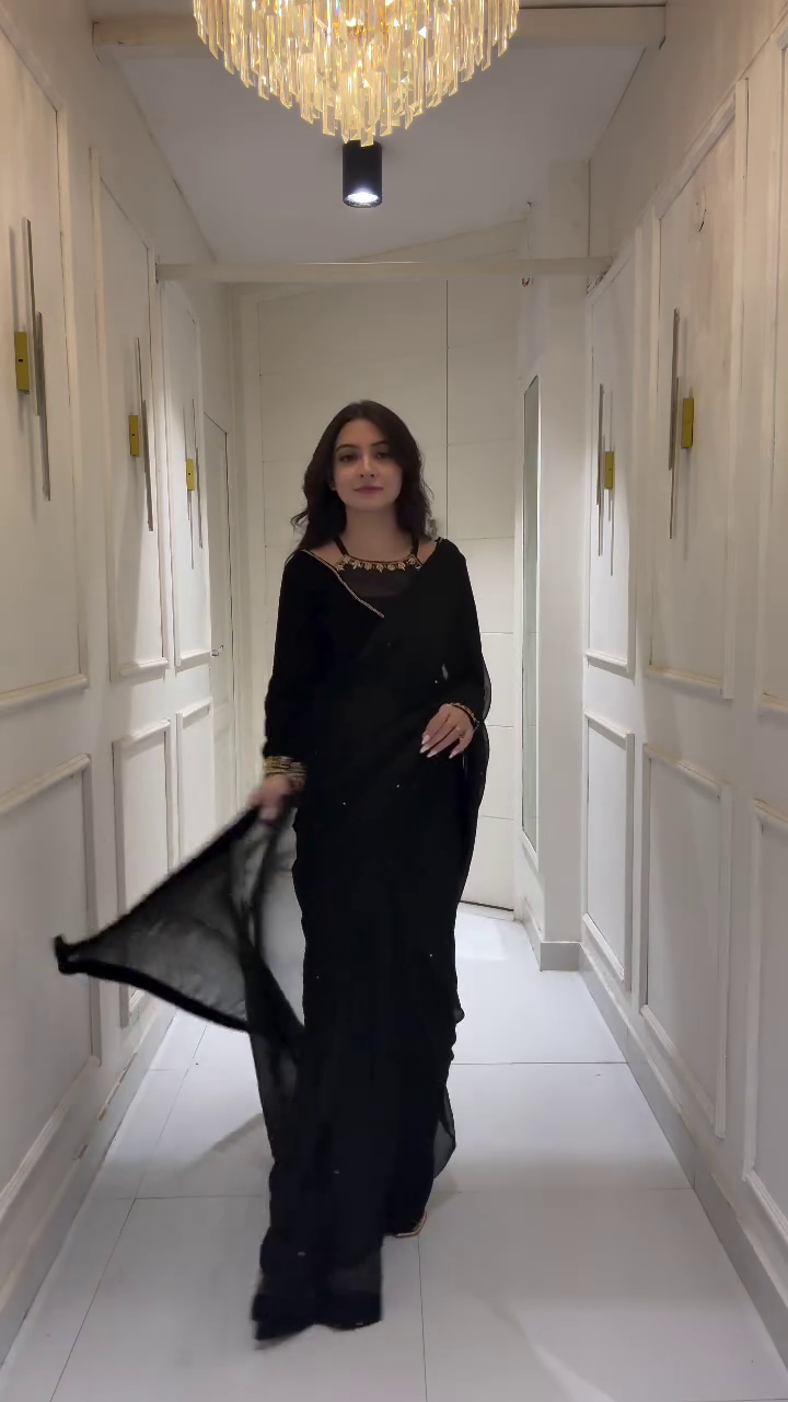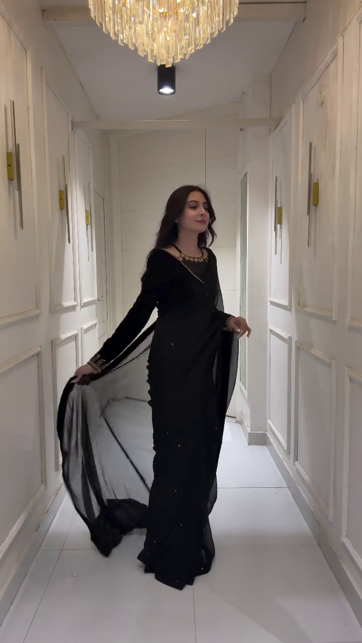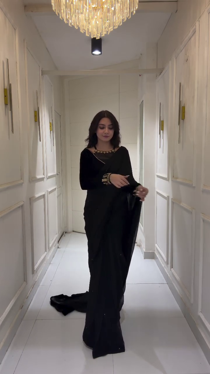 Whether it’s a cocktail party, festive gathering, or an intimate wedding function, this black saree ensures you look effortlessly glamorous. It’s not just an outfit – it’s a statement of class, mystery, and timeless beauty. 🌹