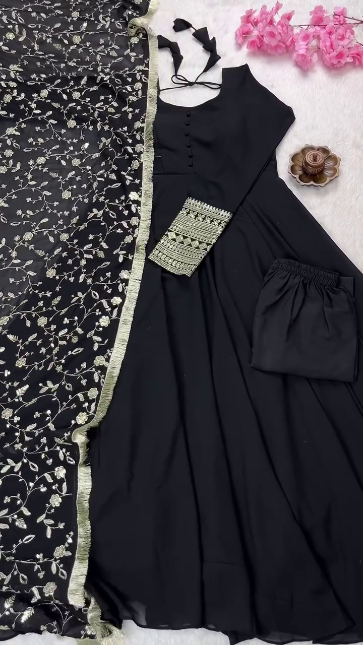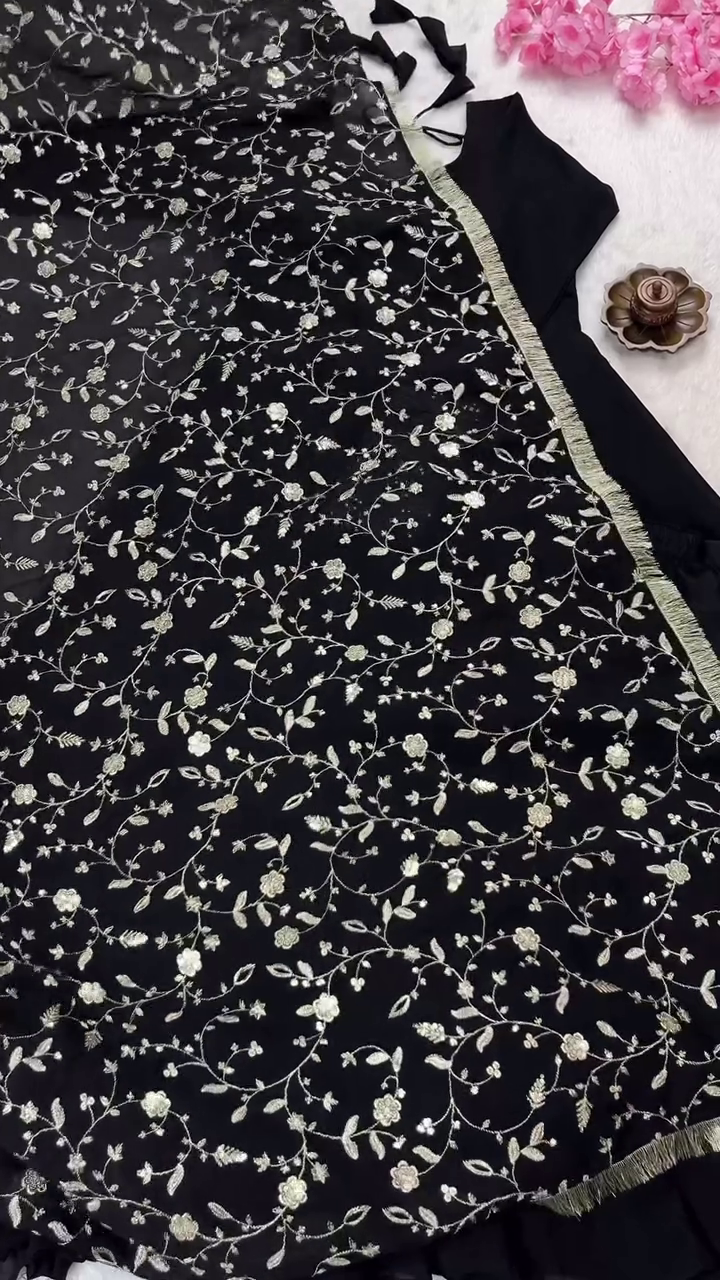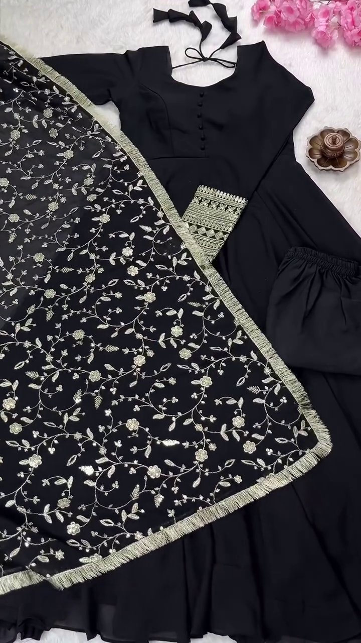 🖤 Elegant Black Anarkali with Embroidered Dupatta 🖤