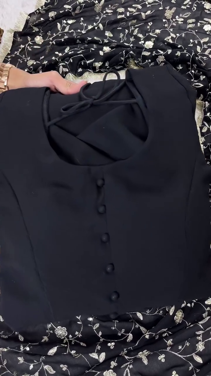 Turn heads with this timeless black Anarkali set, crafted for women who adore a perfect mix of grace and glamour.