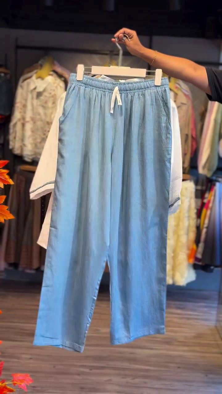 👖 Matching Cotton Denim Trousers – Flattering silhouette and breathable fabric for all-day wear.