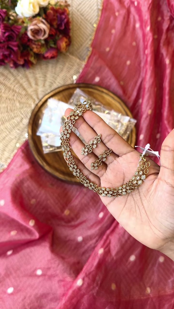 Celebrate tradition with a modern twist and make a statement with this breathtaking gold-plated jewelry set. Let the timeless sparkle and intricate design elevate your style and leave a lasting impression wherever you go.