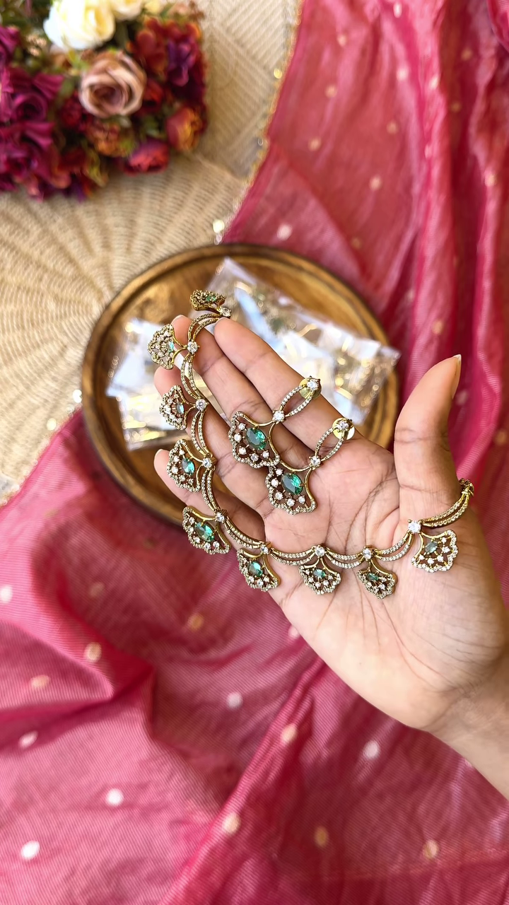 The combination of intricate detailing, fine craftsmanship, and high-quality materials makes this jewelry set a valuable addition to any collection. It also serves as a thoughtful gift for a loved one, symbolizing beauty, grace, and cultural heritage. Whether you’re a bride-to-be looking for the perfect finishing touch to your ensemble or someone who loves adorning classic jewelry, this set is an ideal choice.