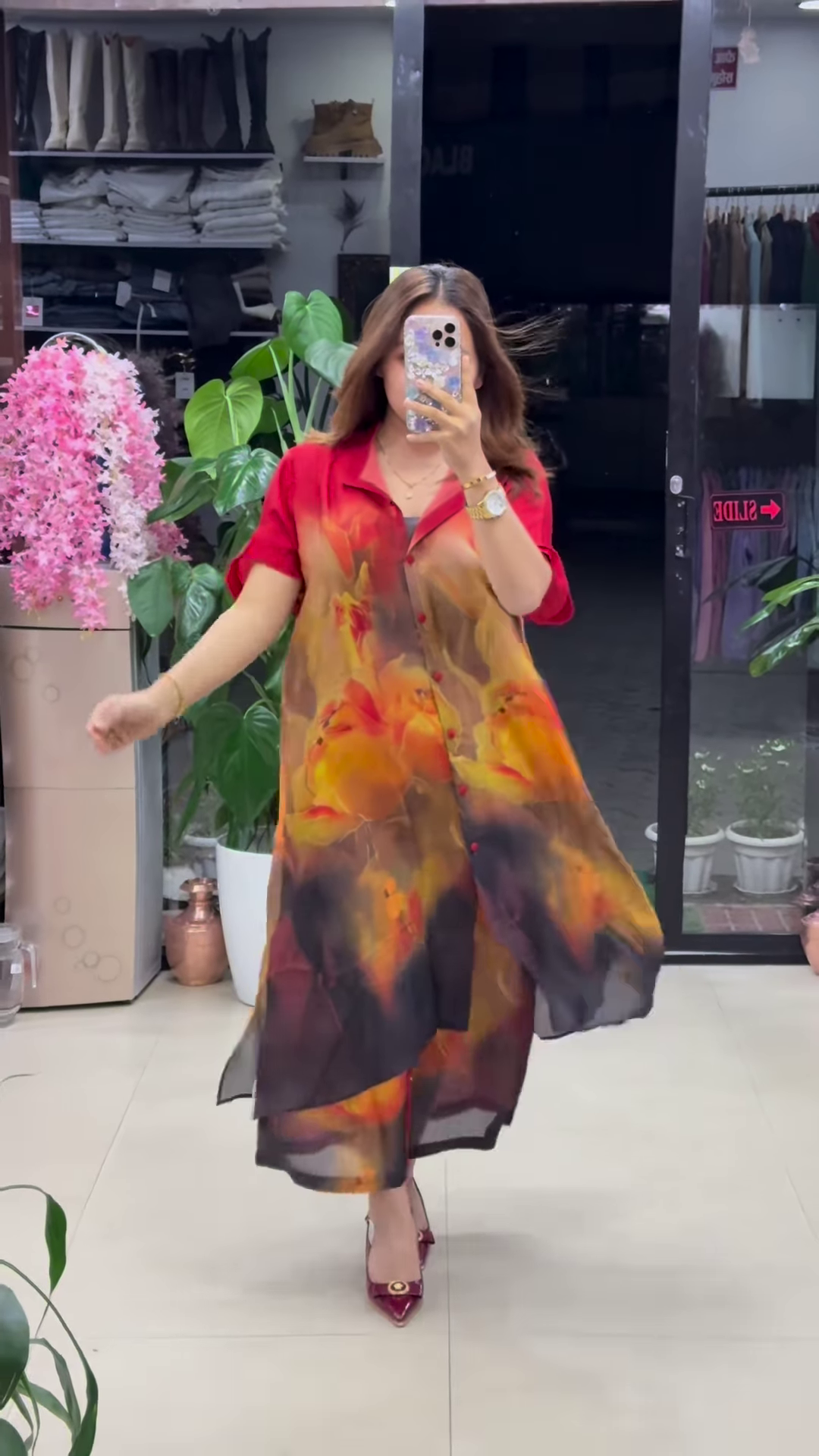 Make a bold style statement with this mesmerizing abstract print shirt dress that combines comfort with high fashion. Featuring a striking fusion of fiery hues and an effortlessly flowing silhouette, this dress is perfect for casual outings, vacations, or evening gatherings. The button-down design adds a touch of sophistication, while the lightweight fabric ensures all-day comfort. Available in 4 unique color variations, each offering a distinct artistic appeal!