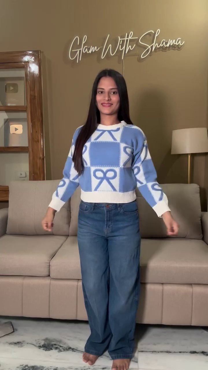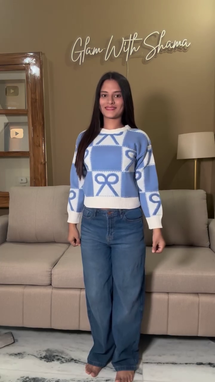 • Blue & White Bow Pattern Sweater