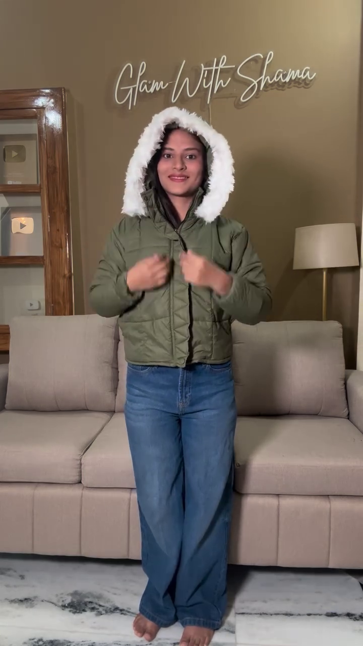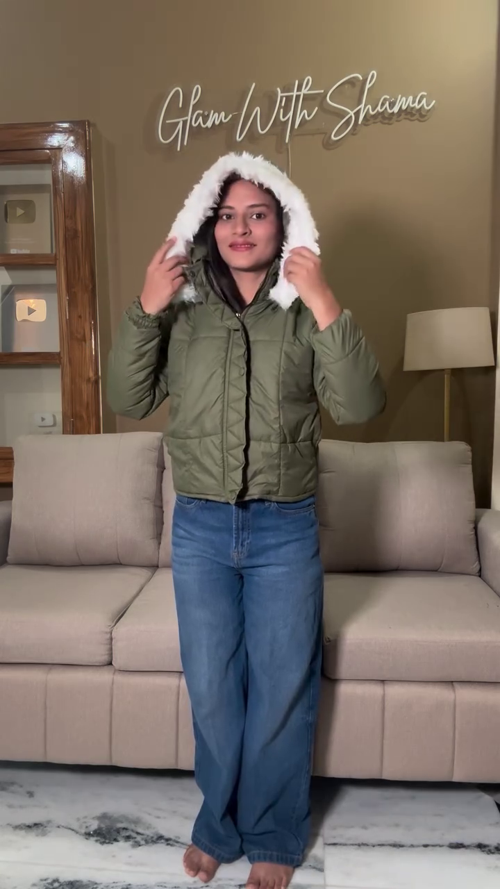 • Olive Fur-Hood Puffer Jacket